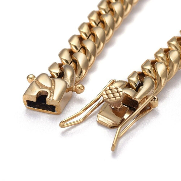Ion Plating(IP) 304 Stainless Steel Cuban Link Chain Bracelet, Gold