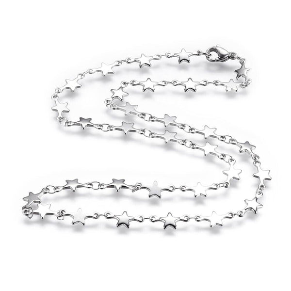 Stainless Steel Chain Necklaces Lobster Star Silver 17.7 inches 45cm Z646