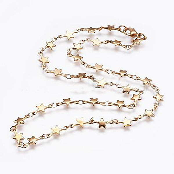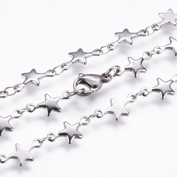 304 Stainless Steel Chain Necklaces, with Lobster Claw Clasps, Star, Stainless Steel Color