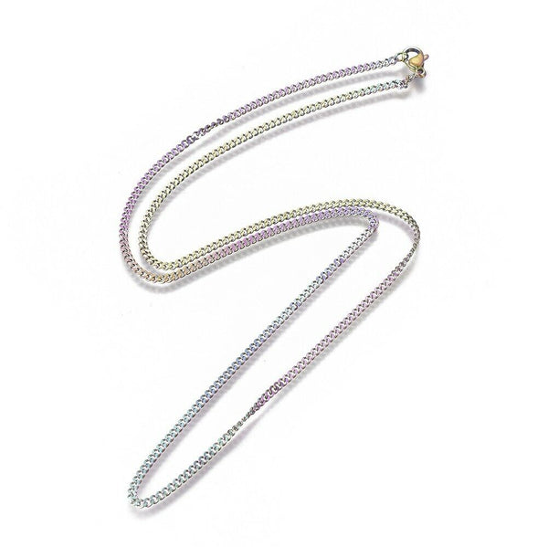 Stainless Steel Curb Chain Neckalces Lobster Black Purple Rose Gold 21.6" P373