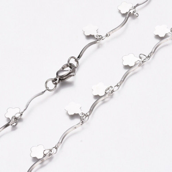 304 Stainless Steel Flower Charm Necklaces, Bar Link Chain Necklaces, with Lobster Claw Clasps, Stainless Steel Color