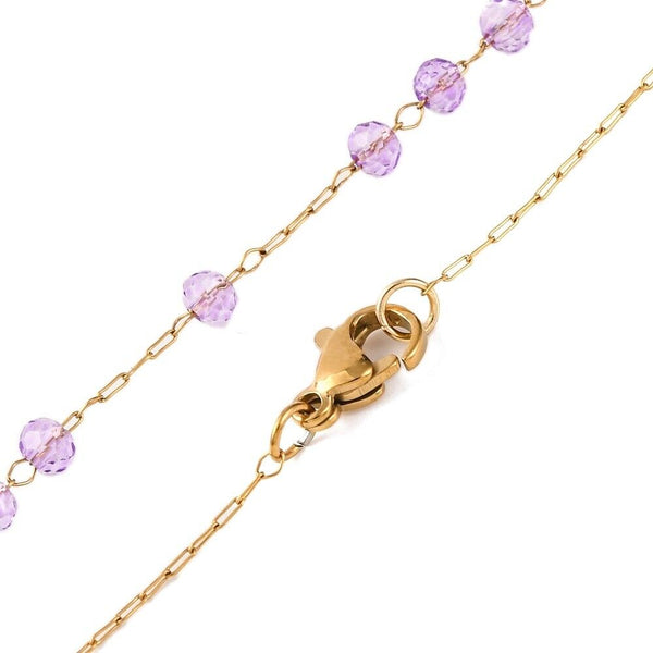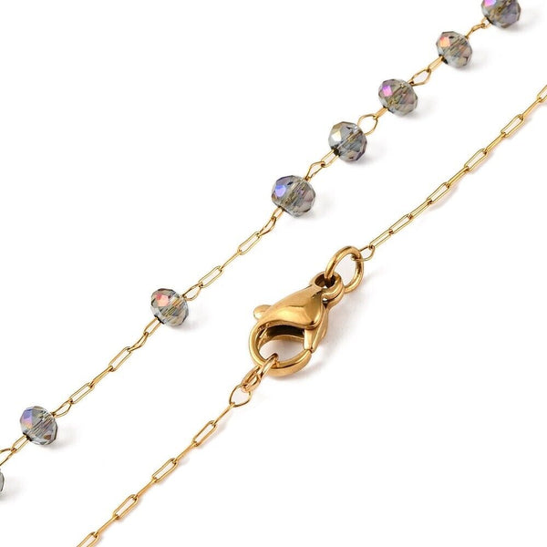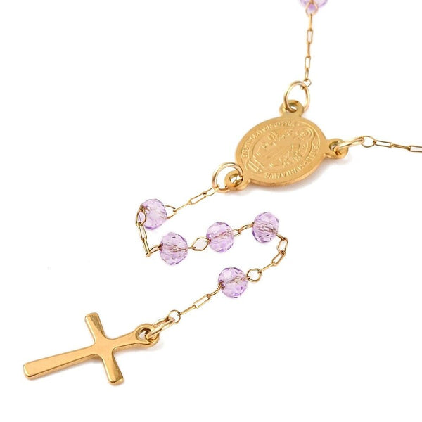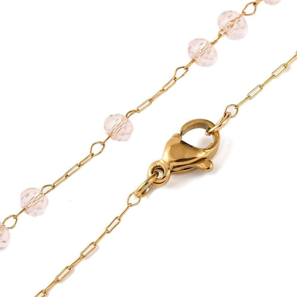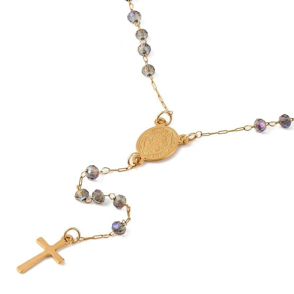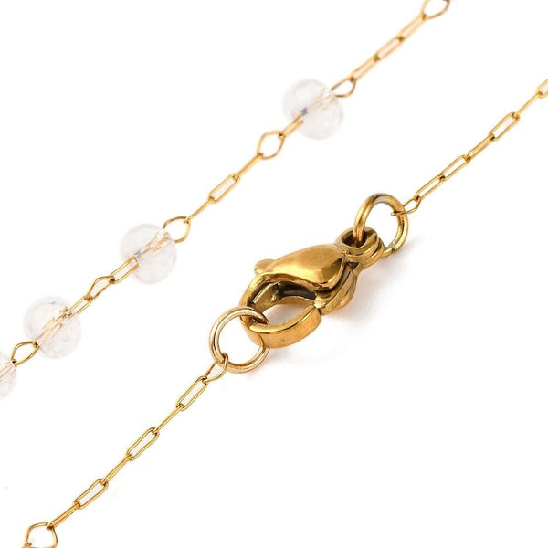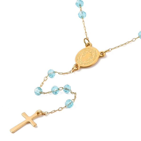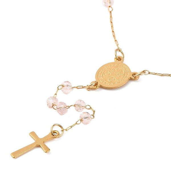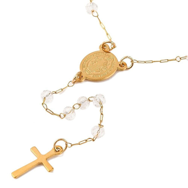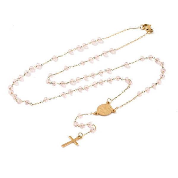 Stainless Steel Gold Rosary 6mm Bead Necklace Cross Prayer Lobster Clasp N29