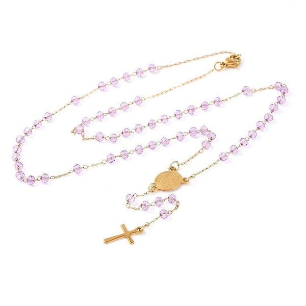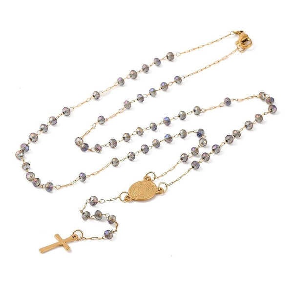 Ion Plating(IP) Crucifix Cross 304 Stainless Steel Rosary Bead Necklaces, with Acrylic Beads,.