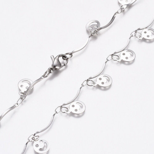 Stainless Steel Happy Smile Charm Necklace Necklace Lobster Silver 17.5" Z471
