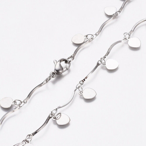 304 Stainless Steel Heart Charm Necklaces, Bar Link Chain Necklaces, with Lobster Claw Clasps, Stainless Steel Color