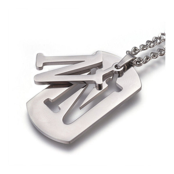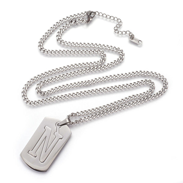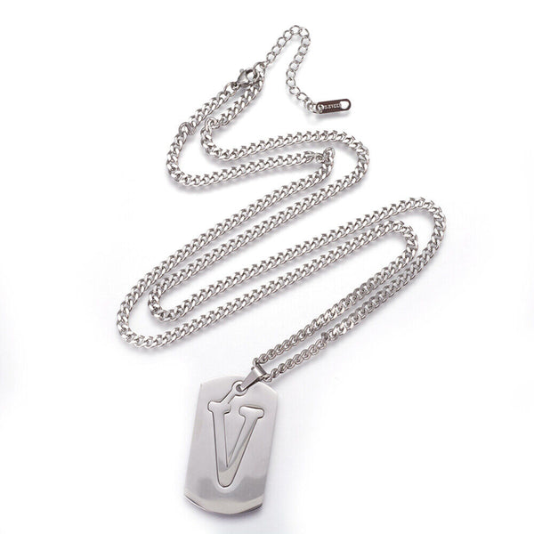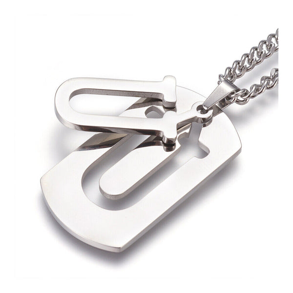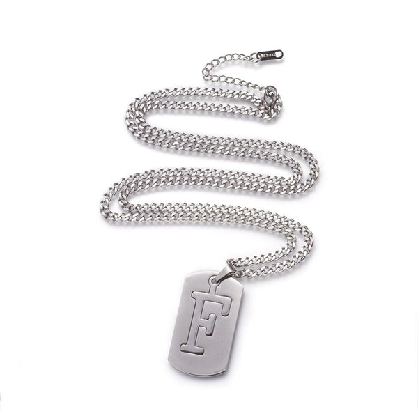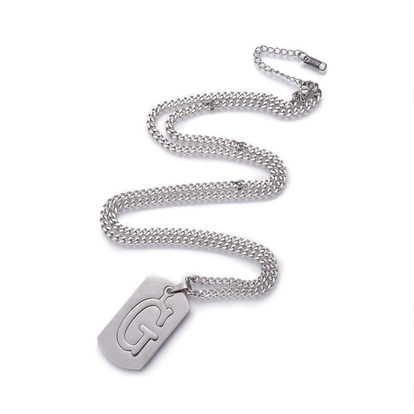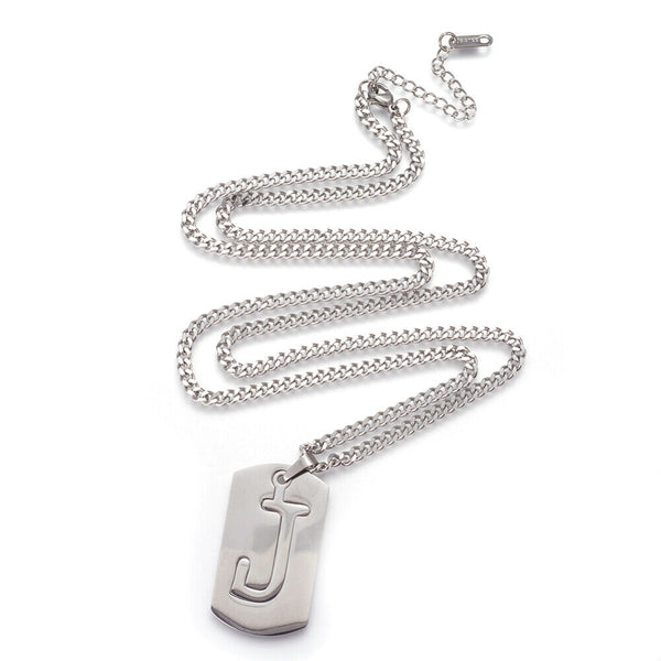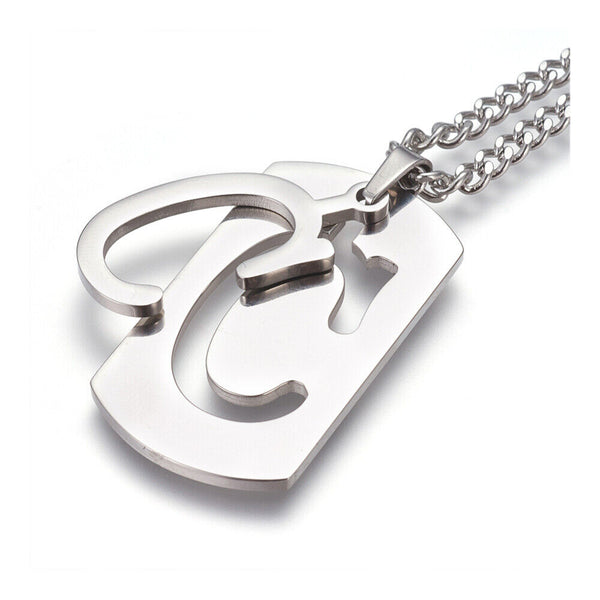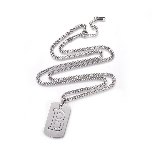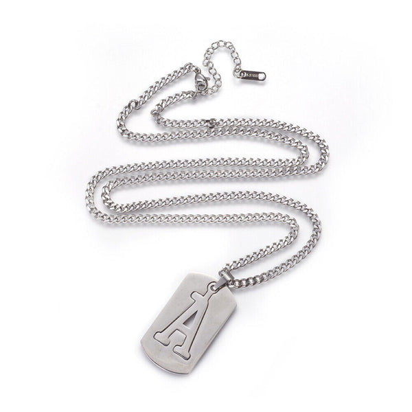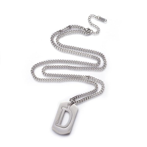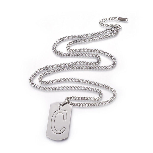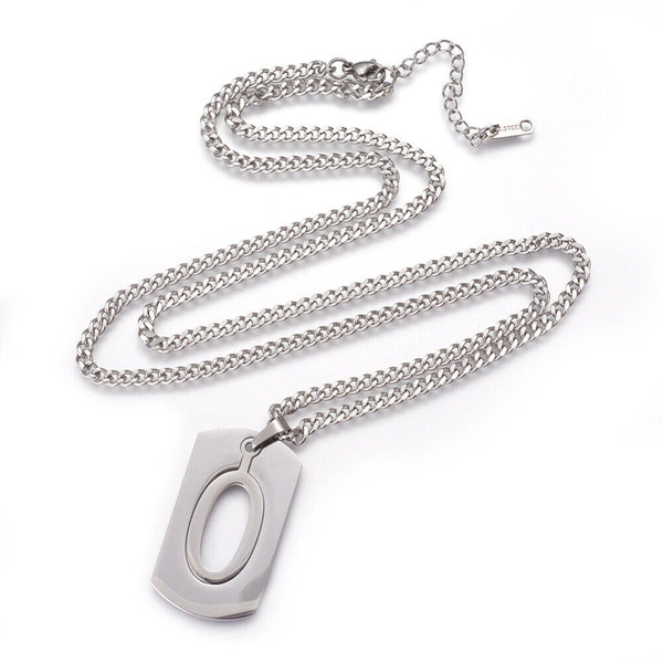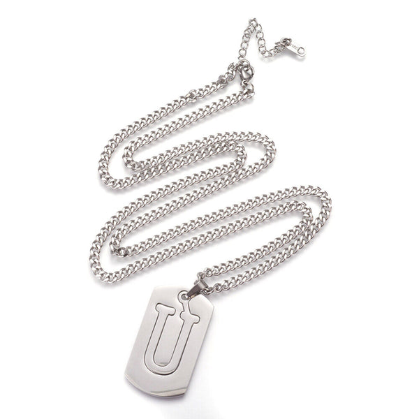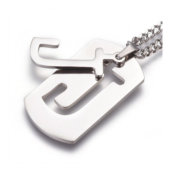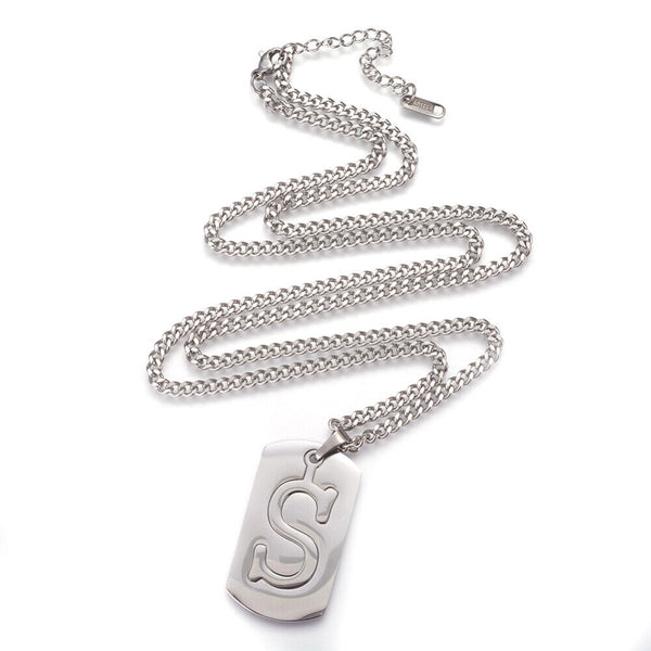 304 Stainless Steel Split Initial Pendant Necklaces, with Lobster Claw Clasps and Curb Chains, Rectangle with Alphabet, LetterS
