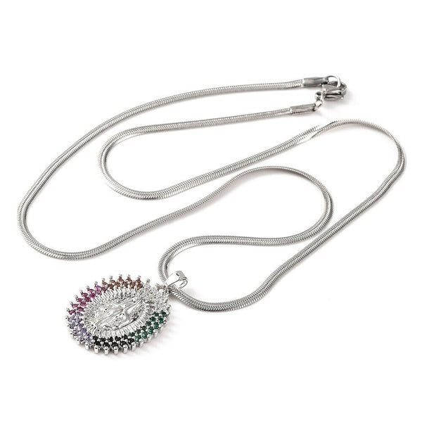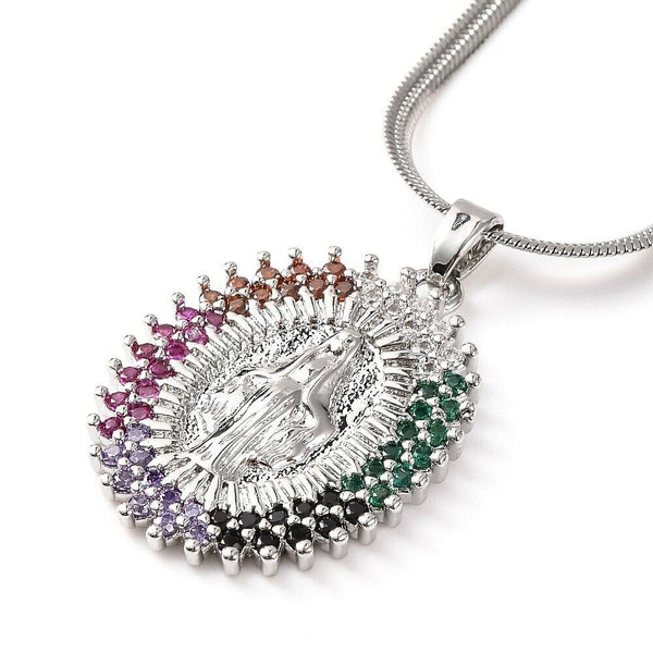 Stainless Steel Necklace Guadalupe Virgin Mary Snake Chain Zirconia Lobster N43