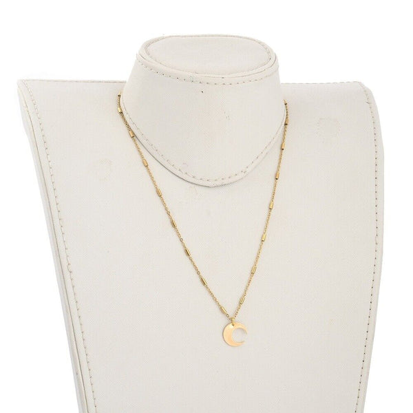 Stainless Steel Pendant Necklace Brass Moon Charm Gold 17.91 inches 45.5cm Z523