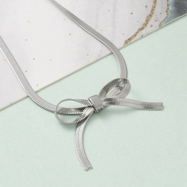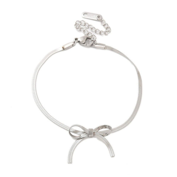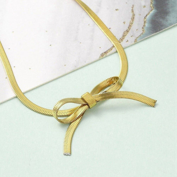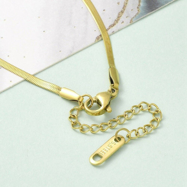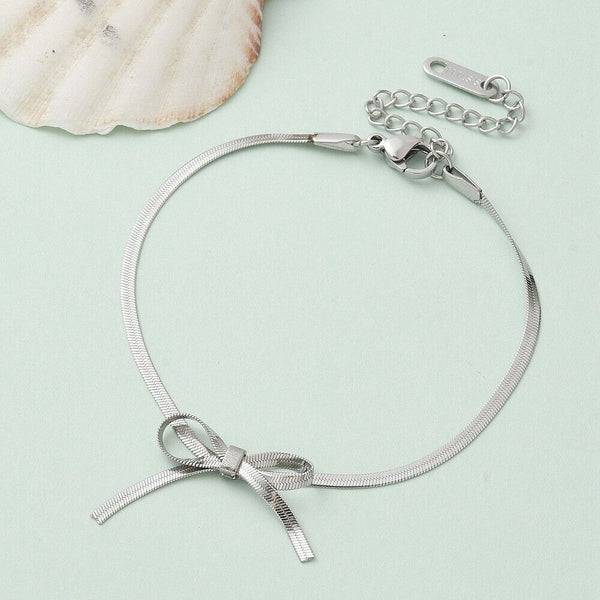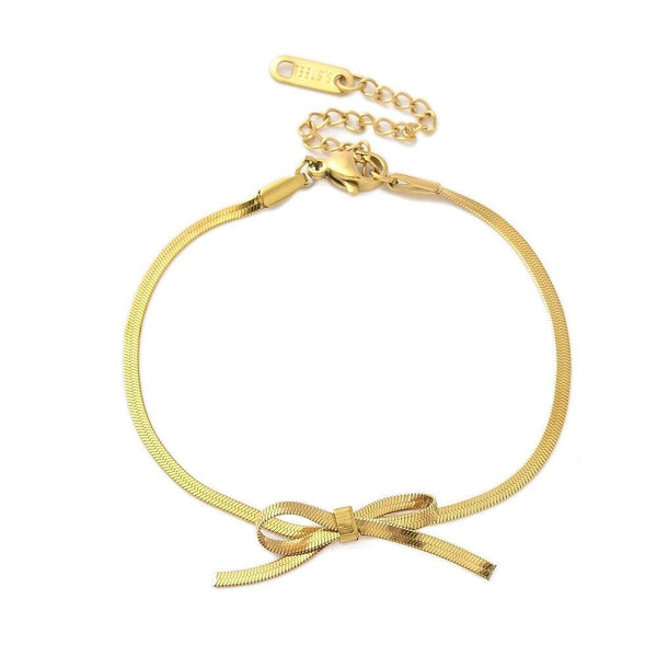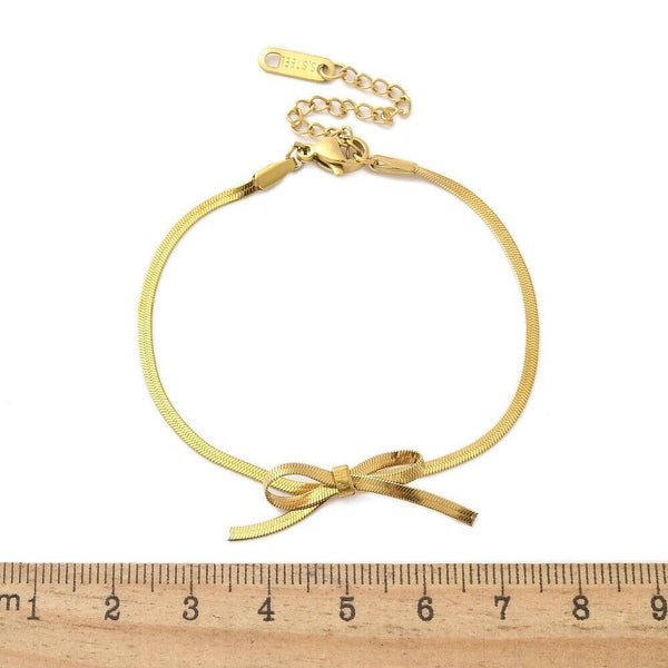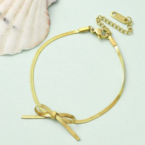 14K Gold Platd Stainless Steel Herringbone Snake Bracelet Bowknot Adjustable T30
