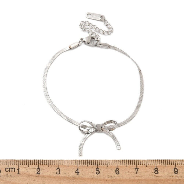 304 Stainless Steel Herringbone Chains Bracelets, Bowknot, Real 14K Gold Plated