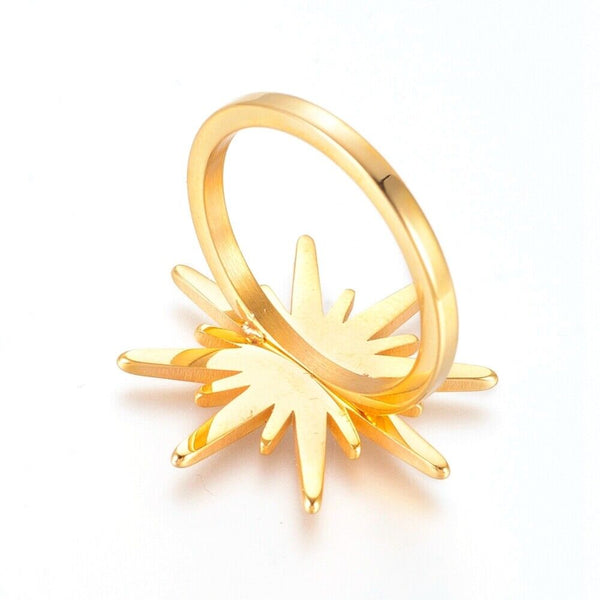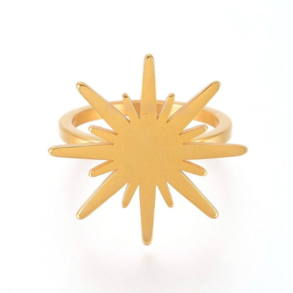 304 Stainless Steel Finger Rings Sun Gold Size 7 17mm  A37