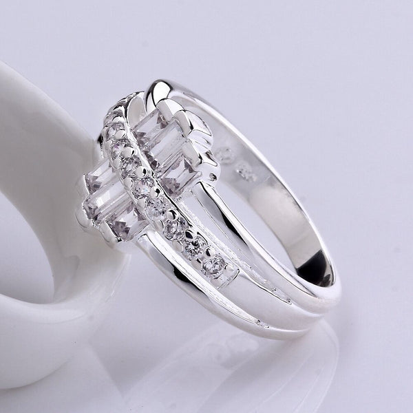 Sterling Silver Plated Cubic Zirconia Band Ring Size 8 B63