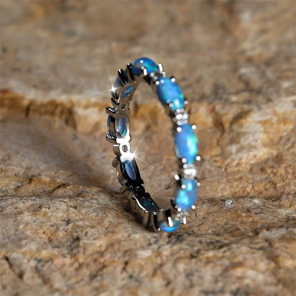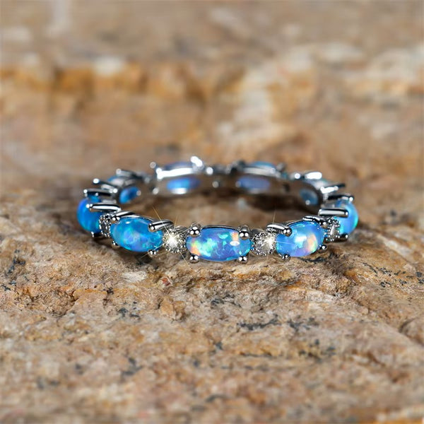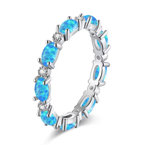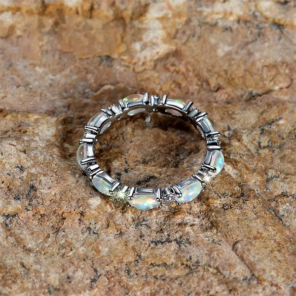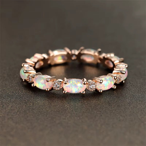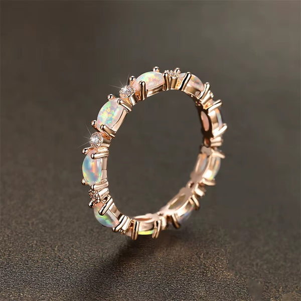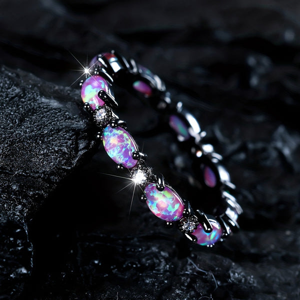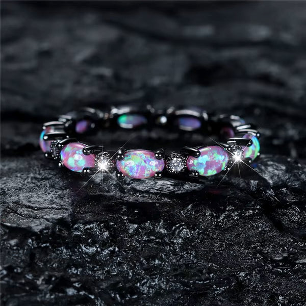 Silver Rose Gold Black Promise Engagement Wedding Opal CZ Zirconia Band Ring R70