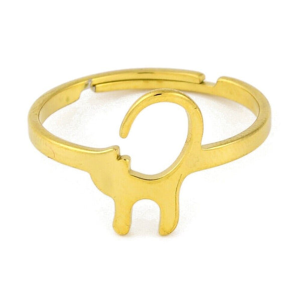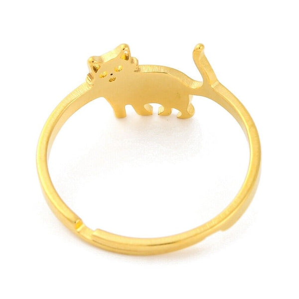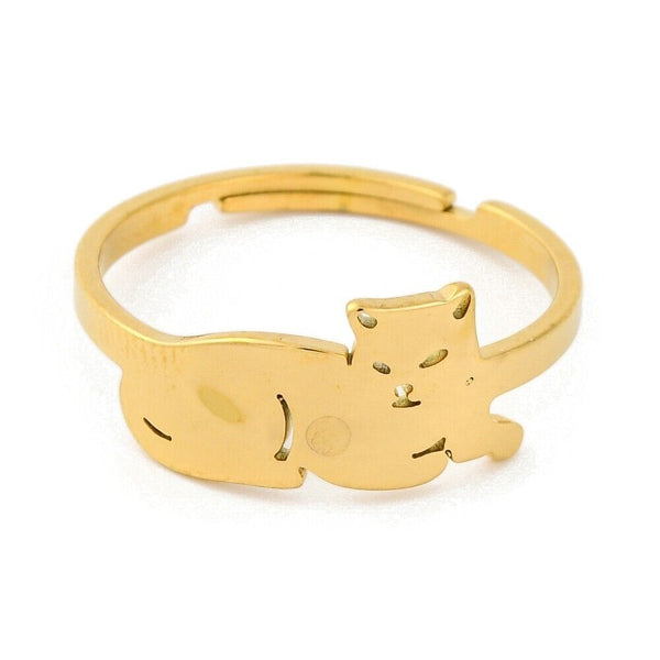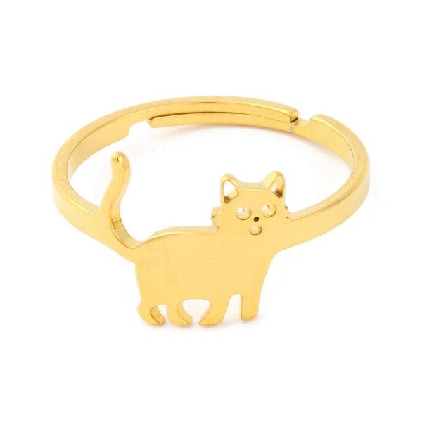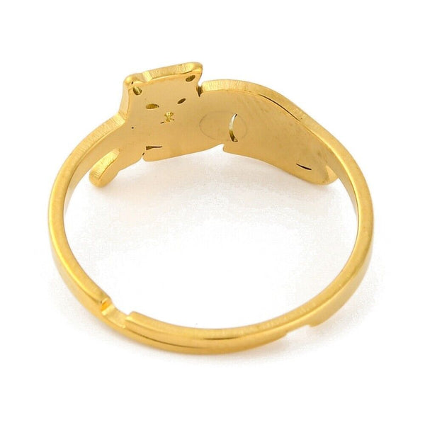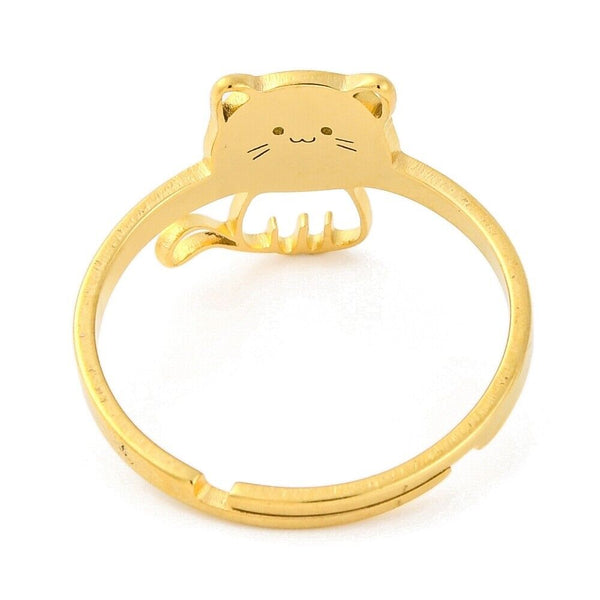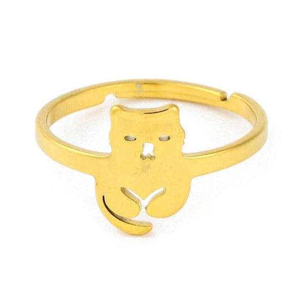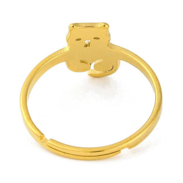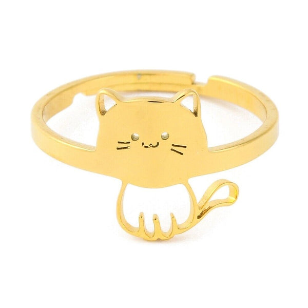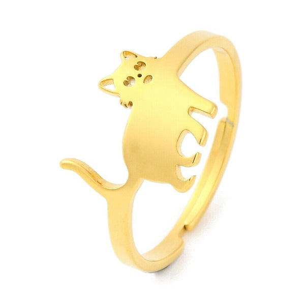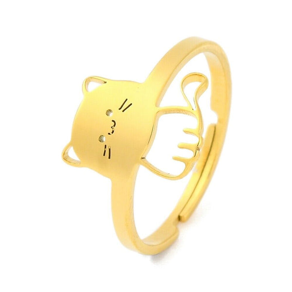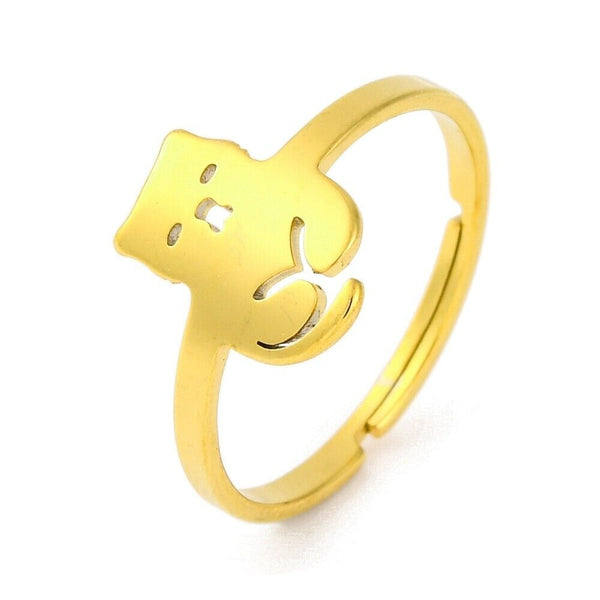 Stainless Steel Non-Tarnish Adjustable Size Ring Cat Kitten Shape Animal Pet R1