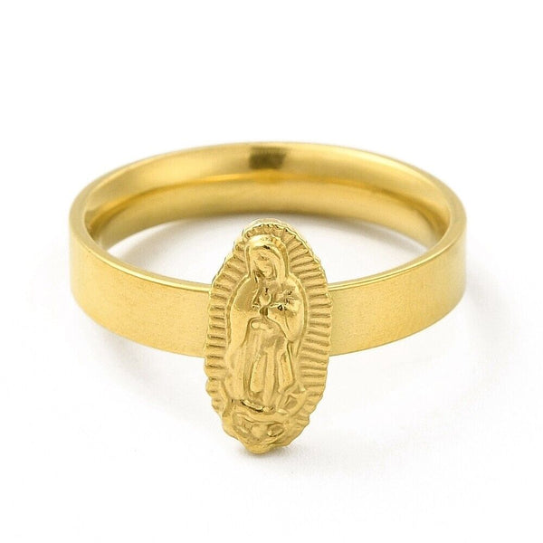 Stainless Steel Oval with Virgin Mary Guadalupe Religious Finger Ring Gold R25